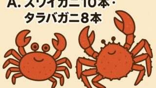 かに豆知識 Q.かにの足の本数は?A.ズワイガニ10本・タラバガニ8本【覚え方解説!】 カニの足の本数について「10本なの?」「8本なの?」と迷ったことはありませんか。実はカニの種類によって本数が異なります。ズワイガニは典型的な十脚目に属しているため10本[1]、一方でタラバガニはヤドカリの仲間なので8本しかありません[2]。... 2025.09.09 かに豆知識